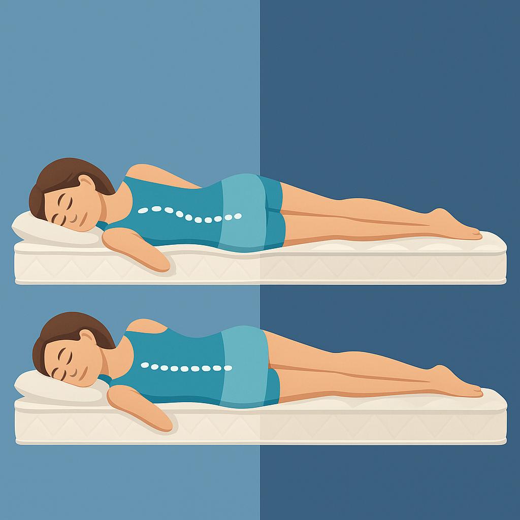 Здоровье спины во многом зависит от того, какое положение шейный, грудной и поясничный отделы принимают во время сна. На мягкой поверхности тело может слишком погрузиться, что приводит к провисанию поясницы и изгибанию позвоночника в неестественную форму. Это вызывает пробуждения, скованность по утрам и усиливает мышечные зажимы.