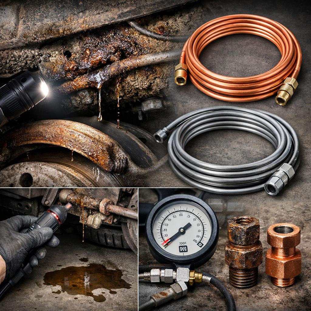 С завода на большинство автомобилей устанавливают стальные трубки с полимерным покрытием. Это надежное решение, но ровно до момента повреждения защитного слоя. Как только полимер трескается или стирается о крепления, начинается электрохимическая реакция. Ржавчина проедает тонкую стенку (обычно 0.7 мм) точечно, создавая микросвищи.
