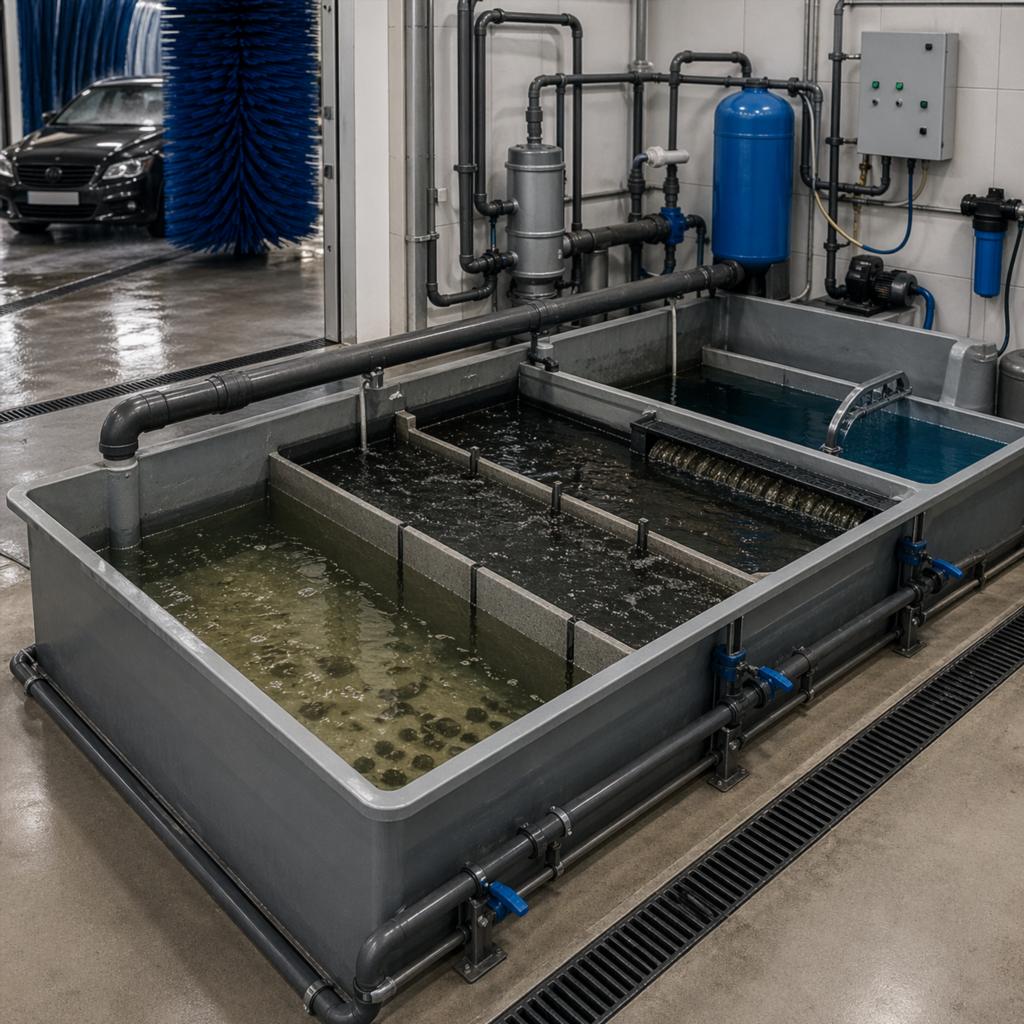 Рециркуляция не означает замкнутый цикл без потерь. Часть воды уходит вместе с загрязнениями, испаряется, выносится на кузовах автомобилей, удаляется при промывке фильтров и обслуживании оборудования. Из-за этого система всегда требует подпитки свежей водой.